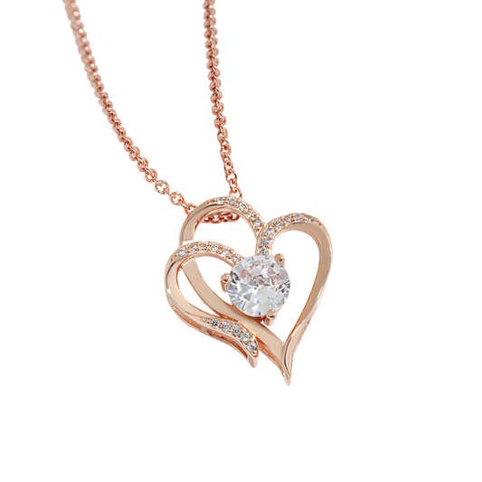 Tamila - Adjustable ladies' necklace with double heart & sparkling zirconia