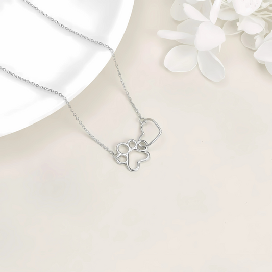 Siarah - Silver paw necklace with heart-shaped crystal pendant