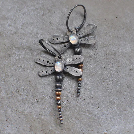 Salma - Vintage dragonfly earrings with moonstone | Silver