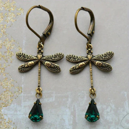 Sky - Vintage dragonfly earrings in gold